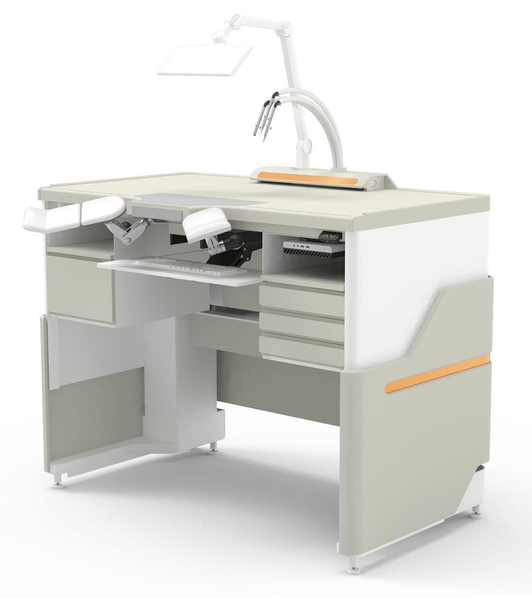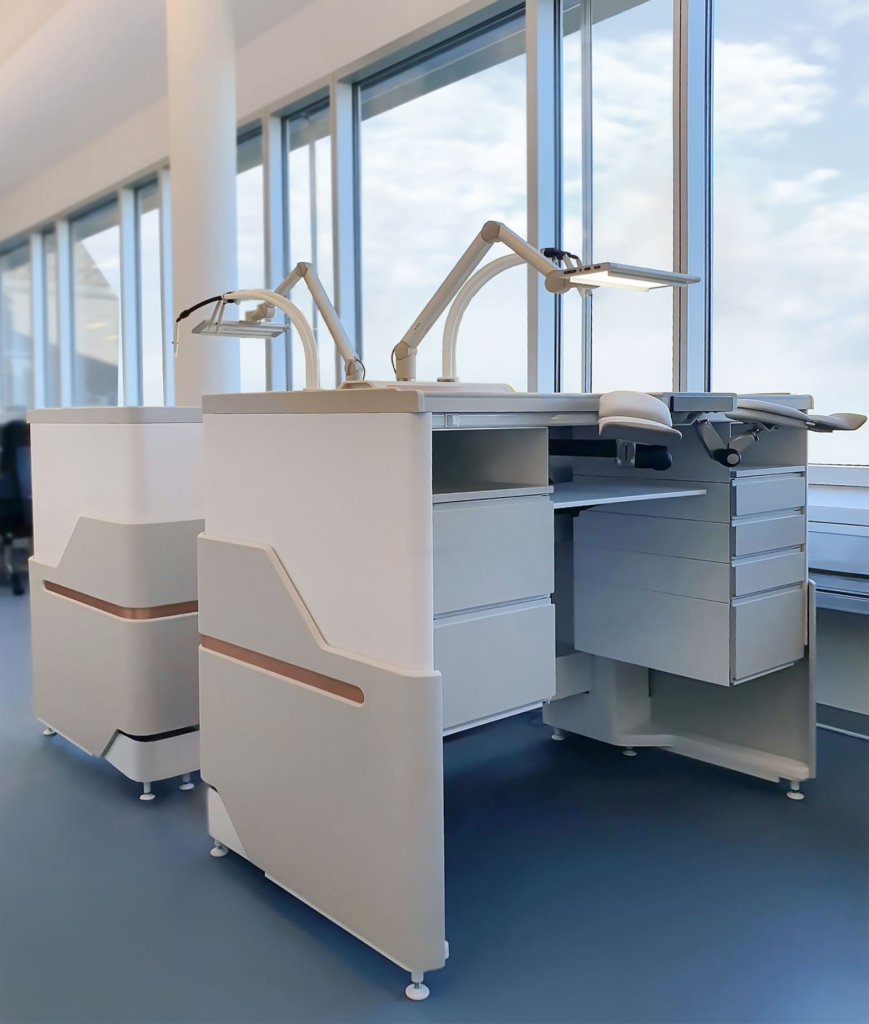 INNOSPACE a été conçu autour de l’utilisateur tant au niveau de l’ergonomie que des tâches techniques. Le banc est équipé de supports pour les bras et le menton, de surfaces non réfléchissantes et de lumières réglables. Il comprend tous les outils nécessaires pour une meilleure accessibilité, un système de fabrication informatisé et même une unité de contrôle intégrée, qui peut être connectée à des instruments électriques supplémentaires sans aucun câble visible.