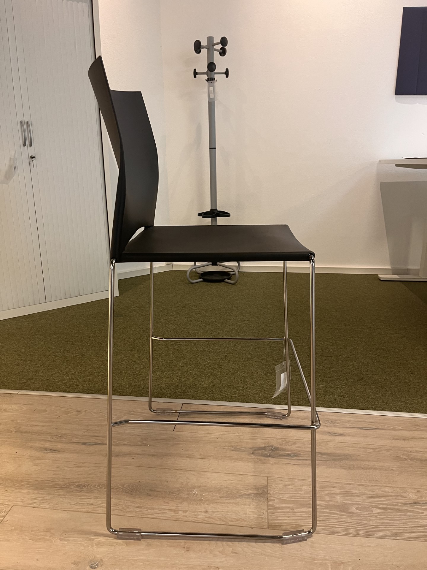 chaise de bar, piètement traineau, assise et dossier en plastique