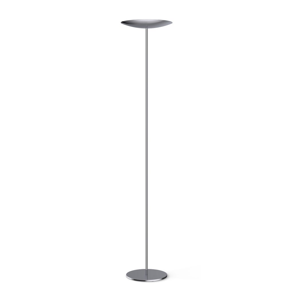 belux classic porte bien son nom. Grâce à son élégance sobre et intemporelle, il est toujours moderne aujourd’hui — près de 30 ans après sa création. Mais l’utilisation d’une puissante ampoule LED est une nouveauté. Avec plus de 8 000 lumens, elle fournit une forte lumière indirecte. La répartition lumineuse est extrêmement large, ce qui permet d’éclairer de grandes surfaces sans problème. Seule la consommation d’énergie est modeste : belux classic est extrêmement efficace avec seulement 80 W. Les finitions sont disponibles en chrome brillant, noir mat et blanc.