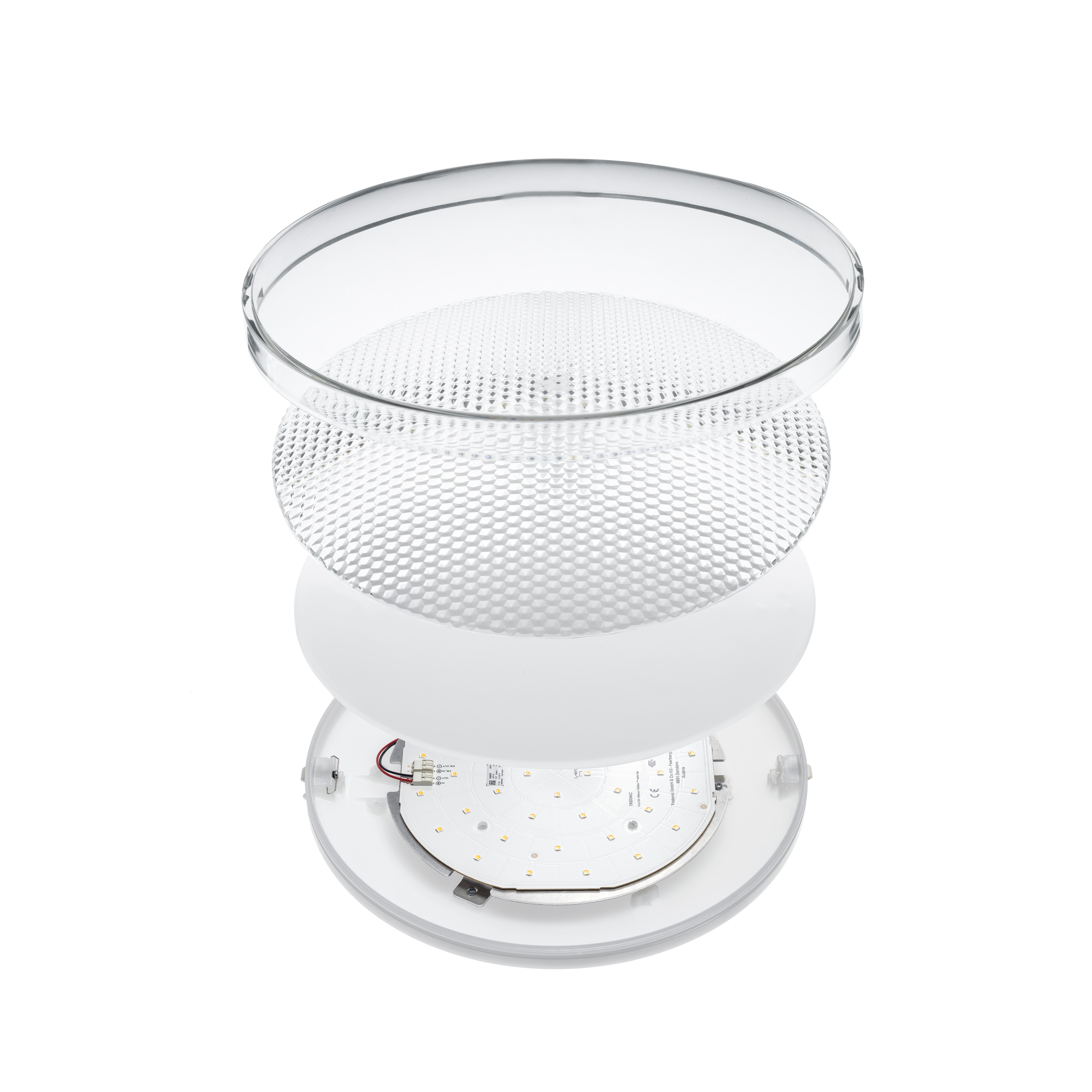 L’applique / plafonnier produit une lumière brillante, largement répartie avec un éblouissement réduit grâce à la superposition de plusieurs éléments diffuseurs et de contrôle du flux. belux o-lite peut être aussi bien placé en intérieur qu’en extérieur (IP54). Le boîtier d’belux o-lite se compose de verre acrylique et de polycarbonate et peut supporter le câblage de transition.
